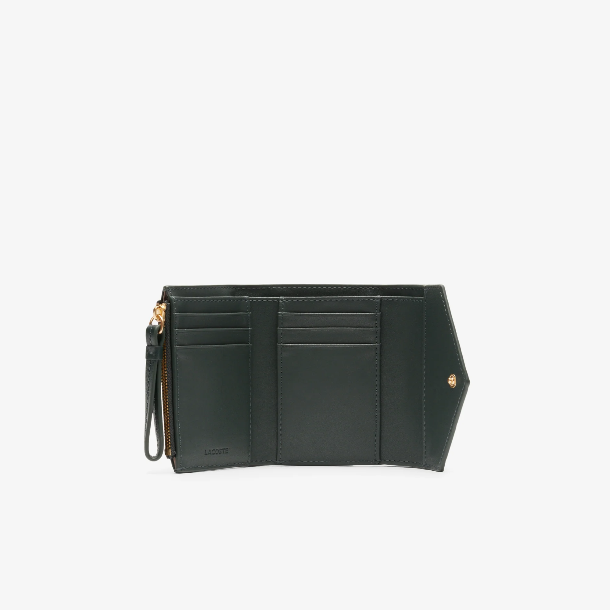 This feminine quilted leather billfold blends iconic style with ergonomic design. Made to hold your cards, bills, receipts and coins. Finished with an elegant monogram and gold signature crocodile for added style points.